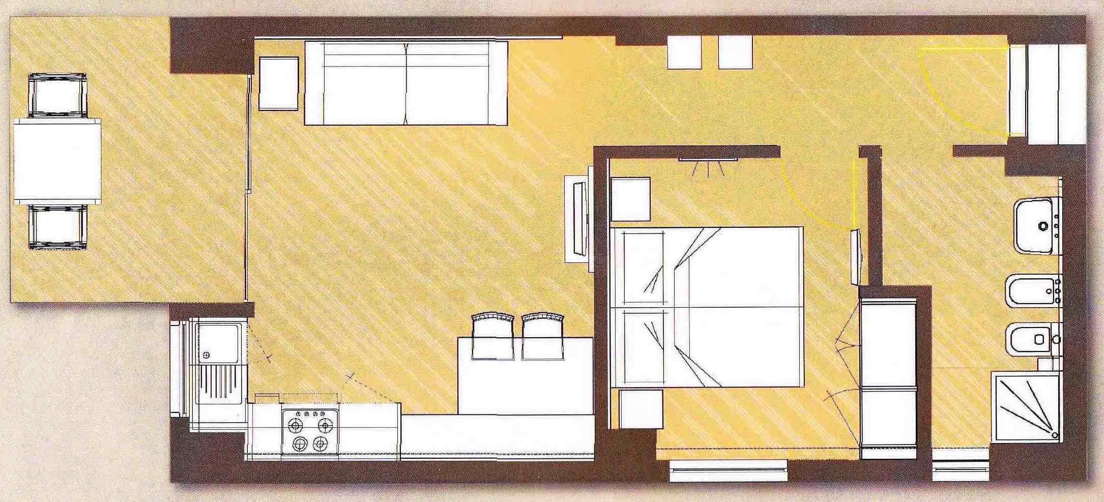 The price includes furniture and household appliances, as well as an underground parking space and a storage room.
