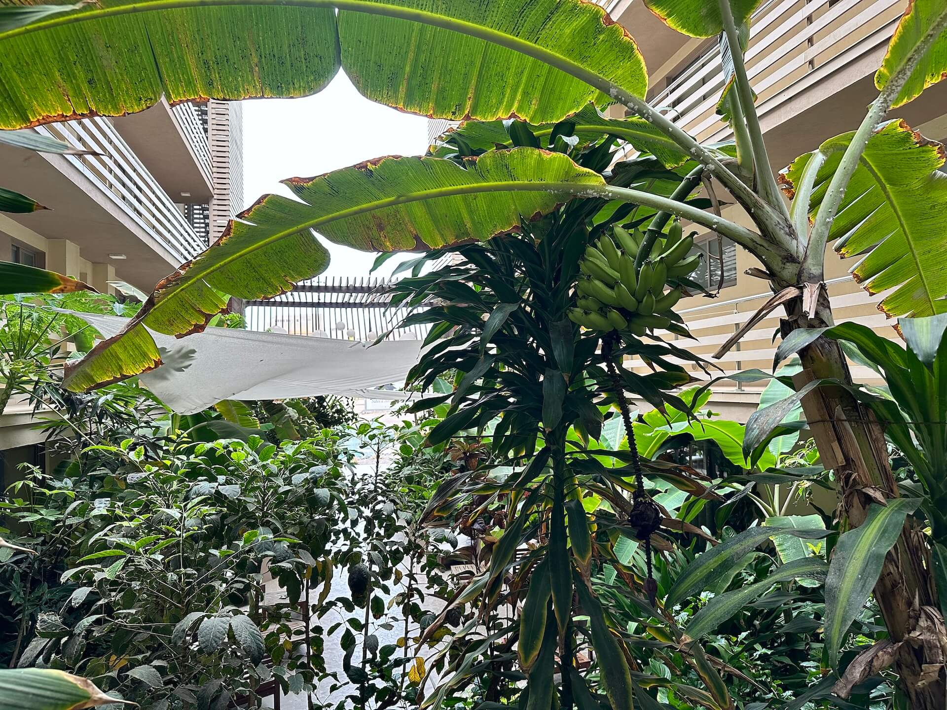 Photos of the Las Rochas residence, which has a swimming pool, deck, equipped sandy beach, mini market. There is a real tropical paradise in the inner hall, bananas and papayas grow. Here you can relax in the shade. A path leads from the residence to the ocean beach.