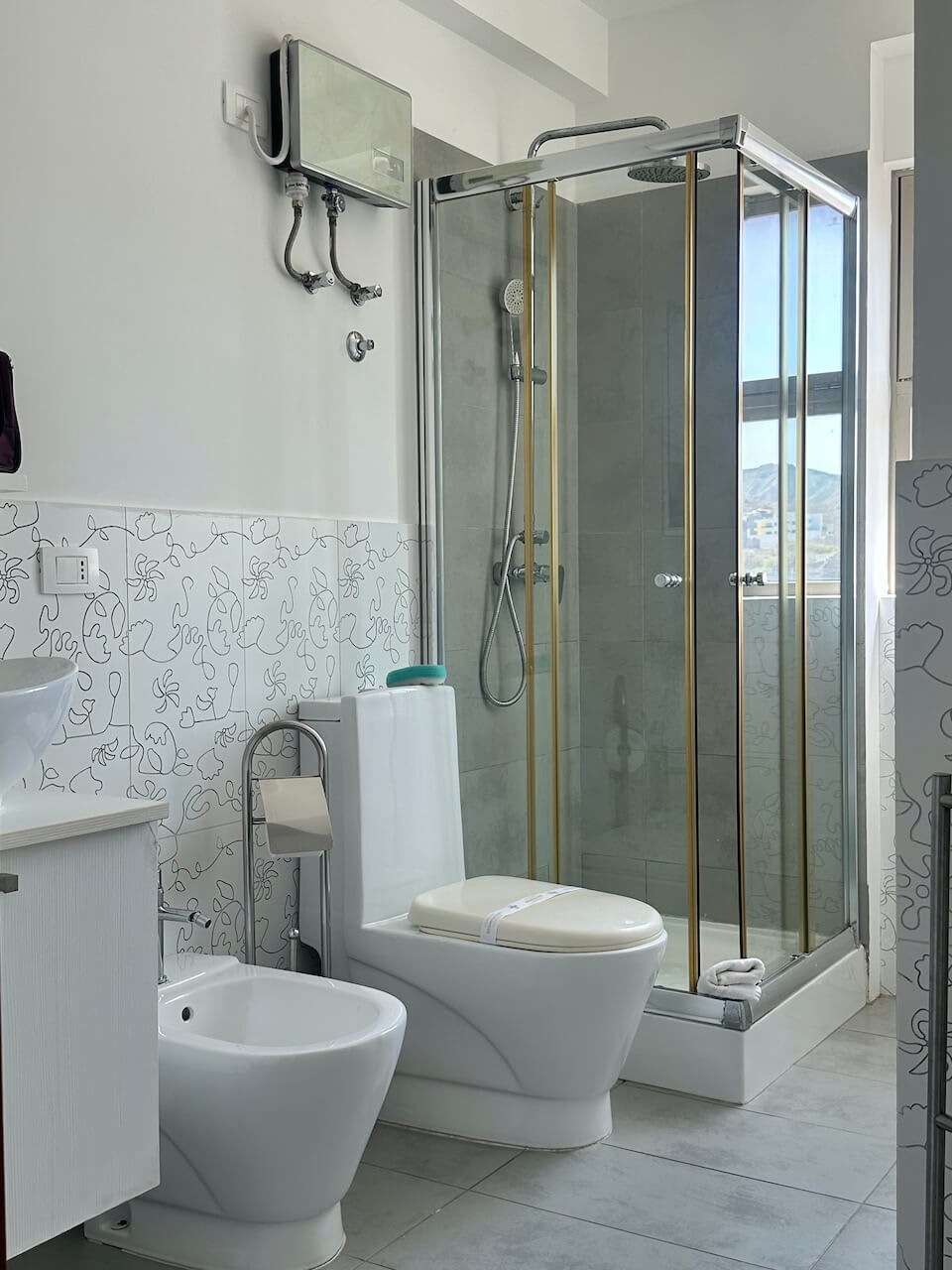 The ceiling height is 2.7 meters. From the bedroom you can access the loggia, which offers a beautiful view of the ocean. The living room has huge windows 2.5 meters high.